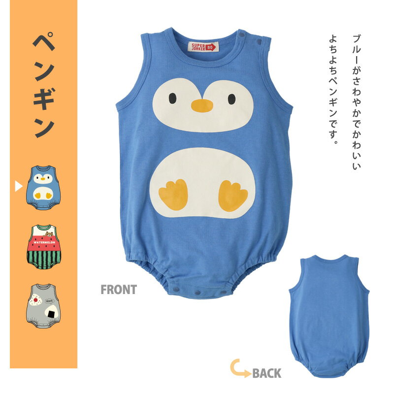 【10%OFF】【メール便送料無料】<カバーオール>綿100% ノースリーブ ロンパース デザイン(70-80cm)【ZOOMIC】▽ ペンギン スイカ くま おにぎり アニマル 動物 子供服 キッズ ベビー 男の子 女の子 70cm 80cm▽