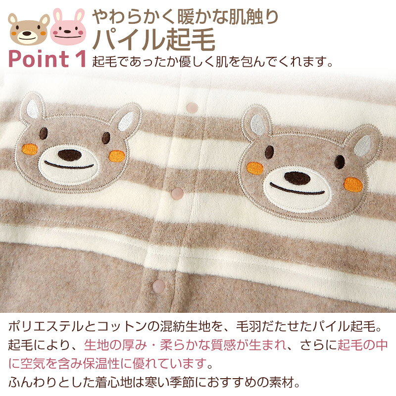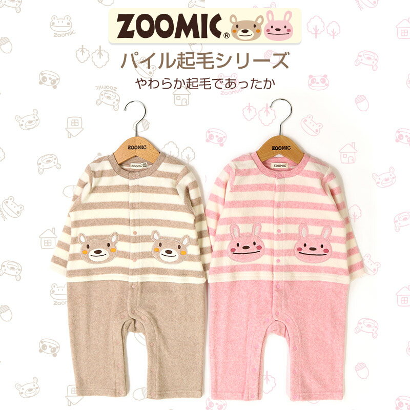 【メール便送料無料】<カバーオール>ズーミック パイル起毛カバーオール (70-80cm)【ZOOMIC】▽新生児 裏起毛 くま うさぎ ベビー服 男の子 女の子 ブランド ファッション 70cm 80cm▽