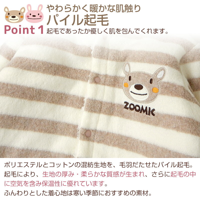 <カバーオール>ズーミック ベビーおくるみオール (50-70cm)【ZOOMIC】▽新生児 裏起毛 くま うさぎ ベビー服 男の子 女の子 ブランド ファッション▽