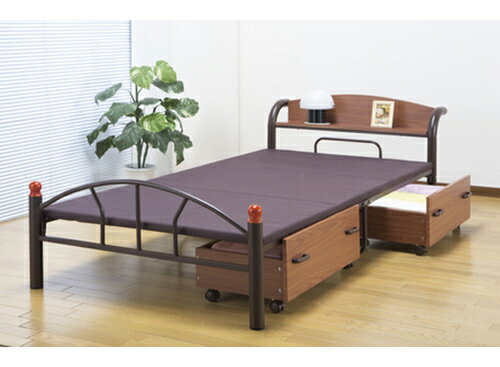 木製棚付き アイアンベッド 引出付き シングル ベッド スチールベッド アイアン 引き出し付き(代引不可)【送料無料】