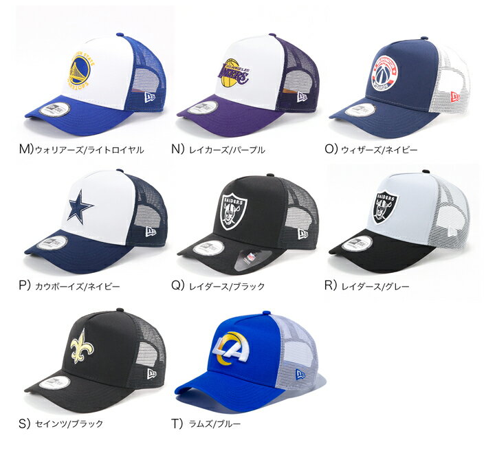 カラー A)NYブラック/ホワイト B)NYブラック/ゴールド C)NYブラック/ストロベリー D)NYネイビー/ホワイト E)LAエンゼルス/スカーレット(レッド) F)LAエンゼルス/ネイビー G)LAブラック/ホワイト H)LAブラック/ゴールド I)レッドソックス/ネイビー J)ホワイトソックス/ブラック K)ブルズ/ブラック(ネイビー) L)ネッツ/ブラック M)ウォリアーズ/ライトロイヤル(ブルー) N)レイカーズ/パープル O)ウィザーズ/ネイビー P)カウボーイズ/ネイビー Q)レイダース/ブラック R)レイダース/グレー S)セインツ/ブラック T)ラムズ/ブルー 素材 本体:綿 100%、メッシュ部分:ポリエステル 100% サイズ FREE(約56.8-60.6cm サイズ調整可) ※個体により若干サイズにばらつきがございます。
