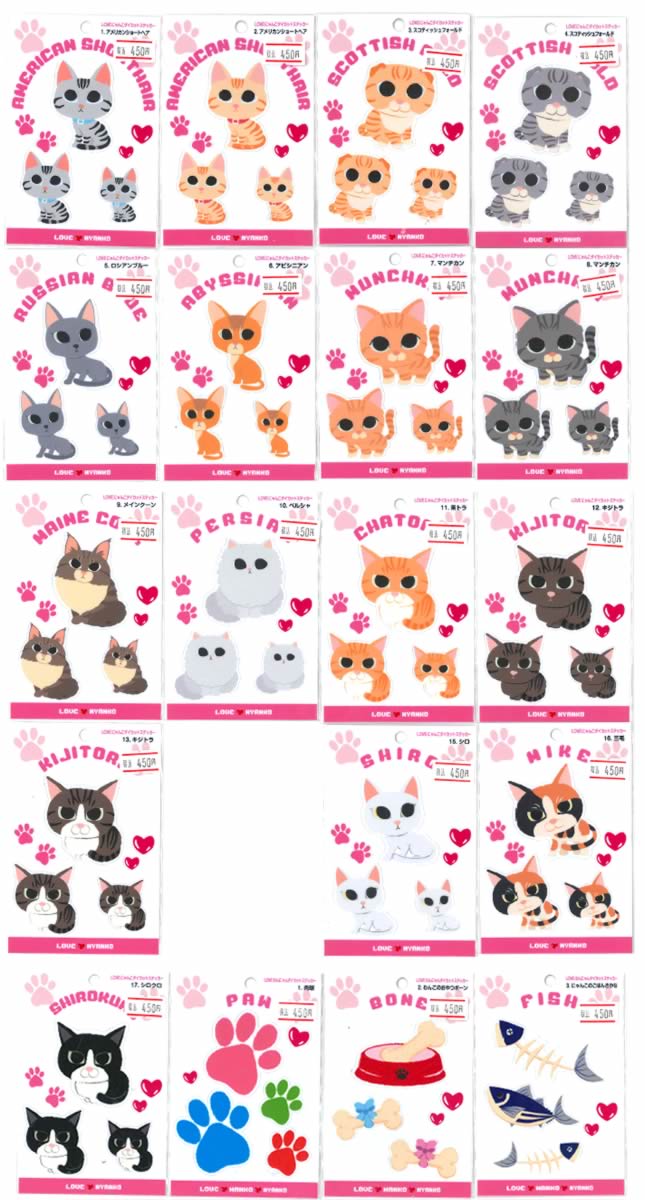 シートサイズ(パッケージ):80×120mm ■デザイン一覧 アメリカンショートヘア スコティッシュフォールド ロシアンブブル^ アビシニアン マンチカン メイクーン ペルシャ 茶トラ キジトラ クロ シロ 三毛 シロクロ LOVE わんこステッカー1 LOVE わんこステッカー2 LOVE わんこマグネット1 LOVE わんこマグネット2 LOVE にゃんこステッカー LOVE にゃんこマグネット◇こちらもチェック♪
