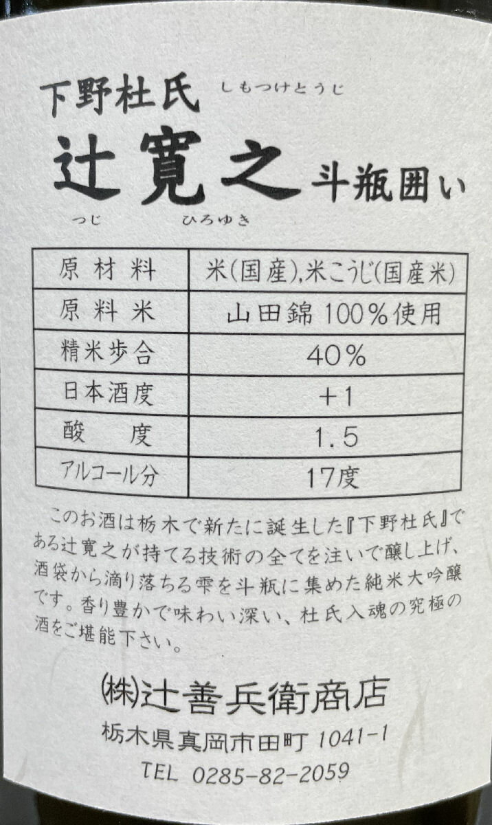 [送料無料] 辻善兵衛 【辻寛之 純米大吟醸 斗瓶囲い】 1800ml 27BY 栃木県(辻善兵衛商店)※当店ワインセラー長期保存商品