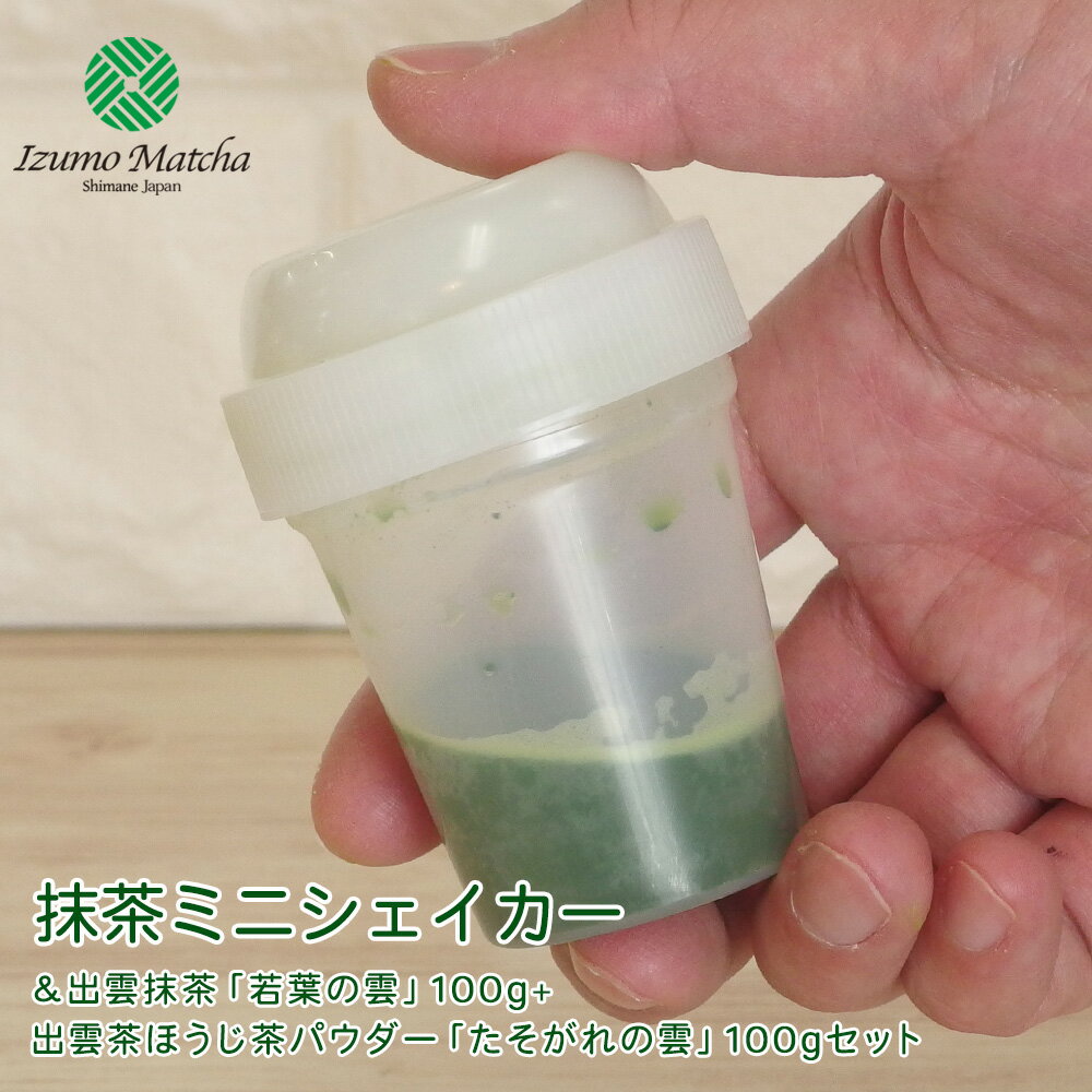 【ティーポット】抹茶ミニシェイカーと出雲抹茶若葉の雲100g+低農薬出雲抹茶棒ほうじ茶パウダーたそがれの雲 100g 50ml 美味しい抹茶をもっともっと手軽に! 手のひらサイズ